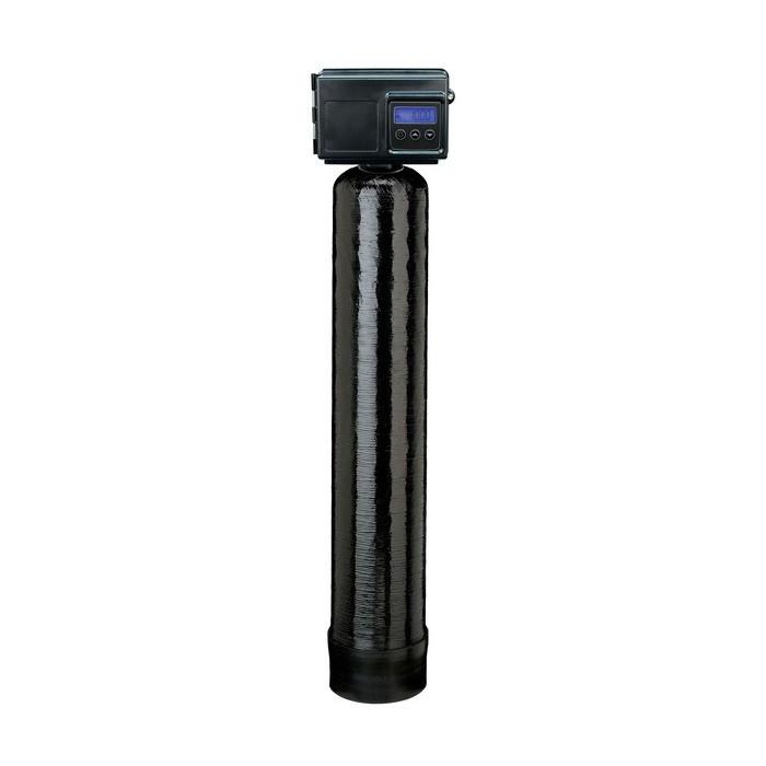 This filter works by adding oxygen to the incoming water by passing it through a bubble of compressed air, which oxidizes dissolved iron to create an easily removed precipitate. The water is then passed through a unique filter bed. The special media not only increases the pH of the water to enhance iron removal but also acts as a physical barrier to trap the iron precipitate. As more water passes through, the oxygen in the unit is used up, and the media gets loaded with iron. The regeneration process then begins in order to replenish the supply of oxygen, and rinse away the precipitated iron trapped in the media bed.
